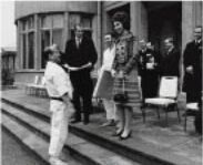 После показательных выступлений Ояма Масутацу беседует с принцем Карлосом и принцессой |