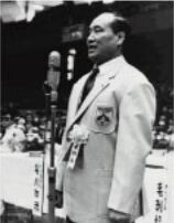 На чемпионате Ояма Масутацу демонстрирует ката «Энтэнкэн» и сам называет это свое выступление последним |