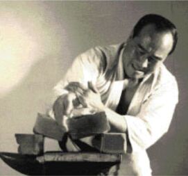 Отбивание горлышка бутылки ударом сюто. За это его прозвали «Рука бога» |