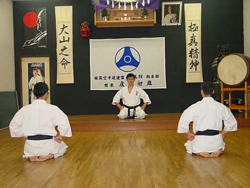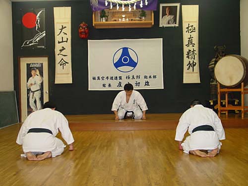 сисэй о тадаситэ, синдзэн (сёмэн) ни рэй — «принять надлежащую позу «сесть ровно» и поклониться «сндзэн» или (фронтальной части зала) (Фото 26-27).