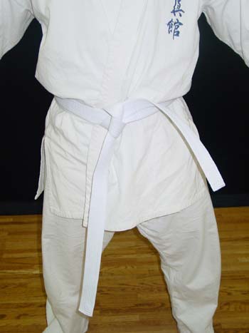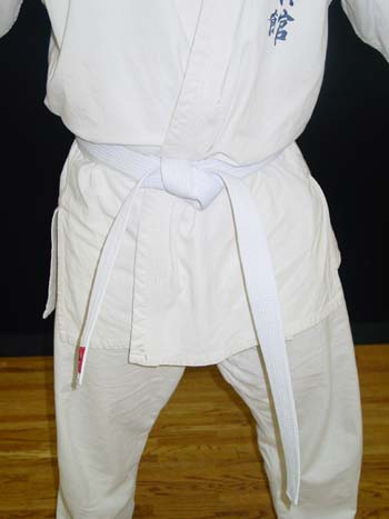 Пояс следует повязывать правильно. Концы пояса должны быть равной длины. Надписи на поясе должны быть повернуты наружу.