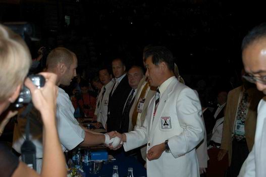 Полуфинал чемпионата мира по весовым категориям 2001 года. Жертвой разящего сверхскоростного дзёдан маваси-гэри Осипова стала надежда Японии Танака Кэнтаро.