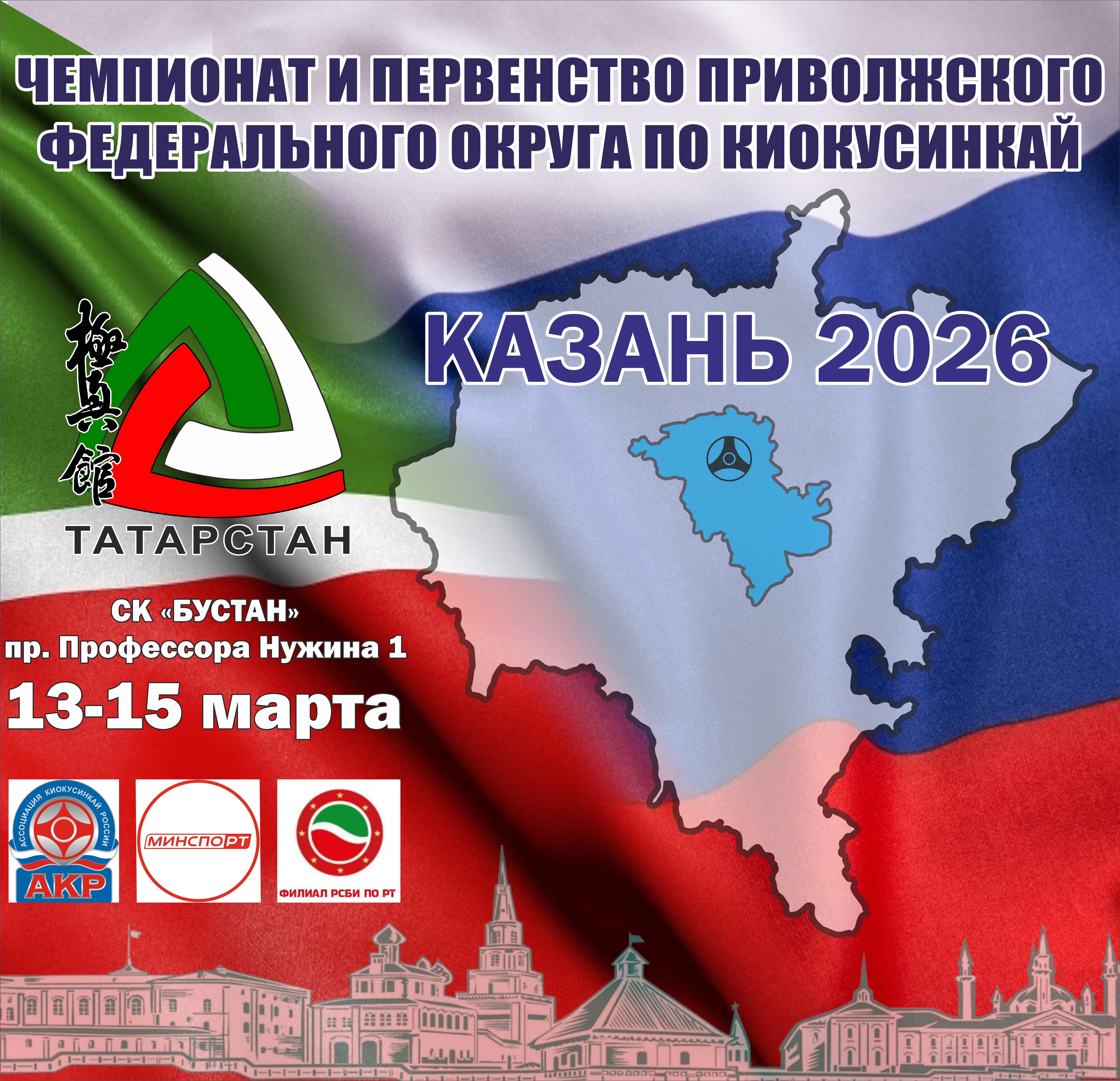Чемпионат и первенство Приволжского ФО по Кёкусин-кан среди мужчин, женщин, мальчиков, девочек, юношей, девушек, юниоров и юниорок. Казань, 13 - 15 марта 2026 г.