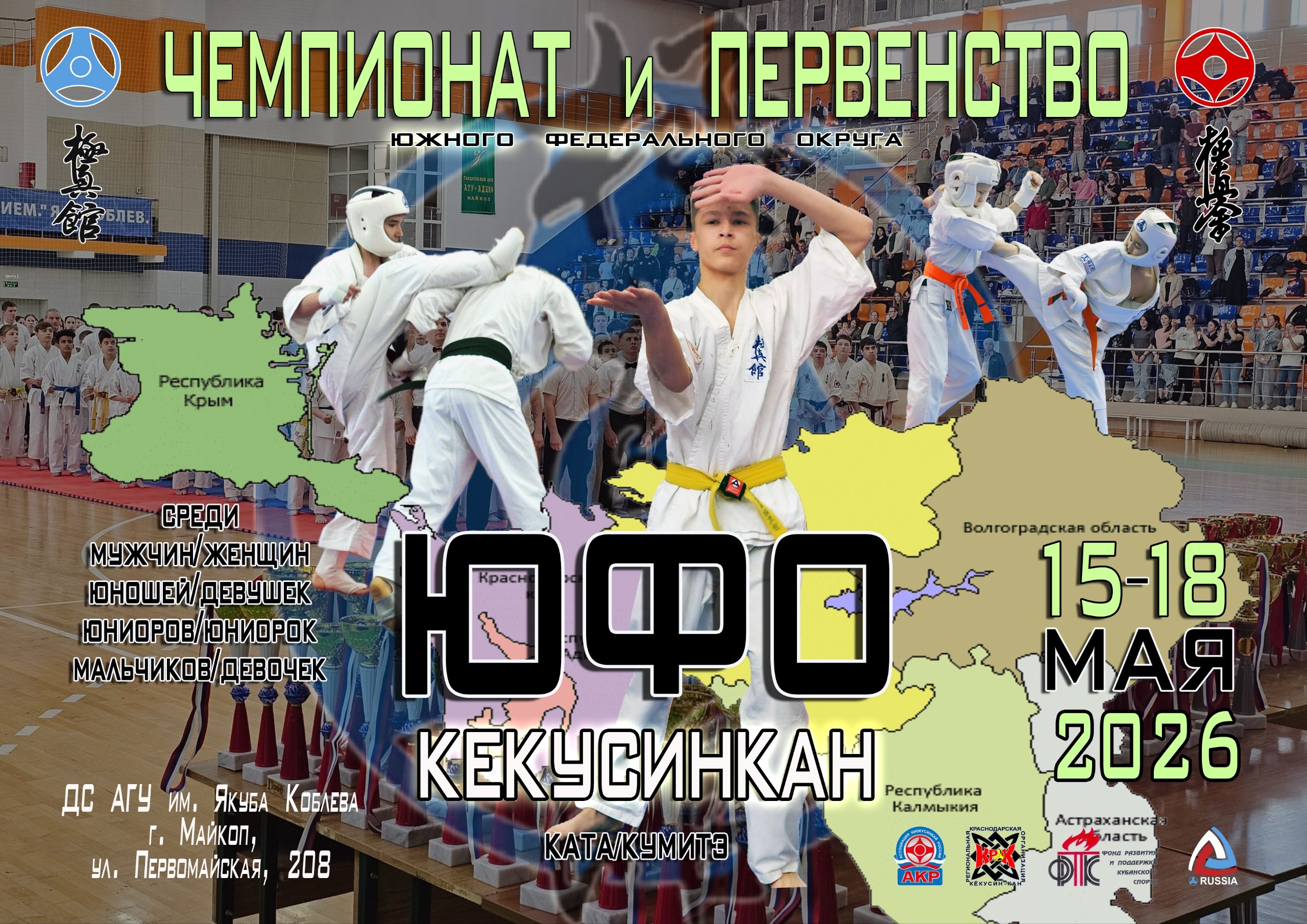 Чемпионат и Первенство Южного ФО. по кёкусинкан среди мальчиков, девочек, юношей, девушек, юниоров, юниорок, мужчин и женщин. Республика Адыгея, г. Майкоп, 15 - 18 мая 2026 г.